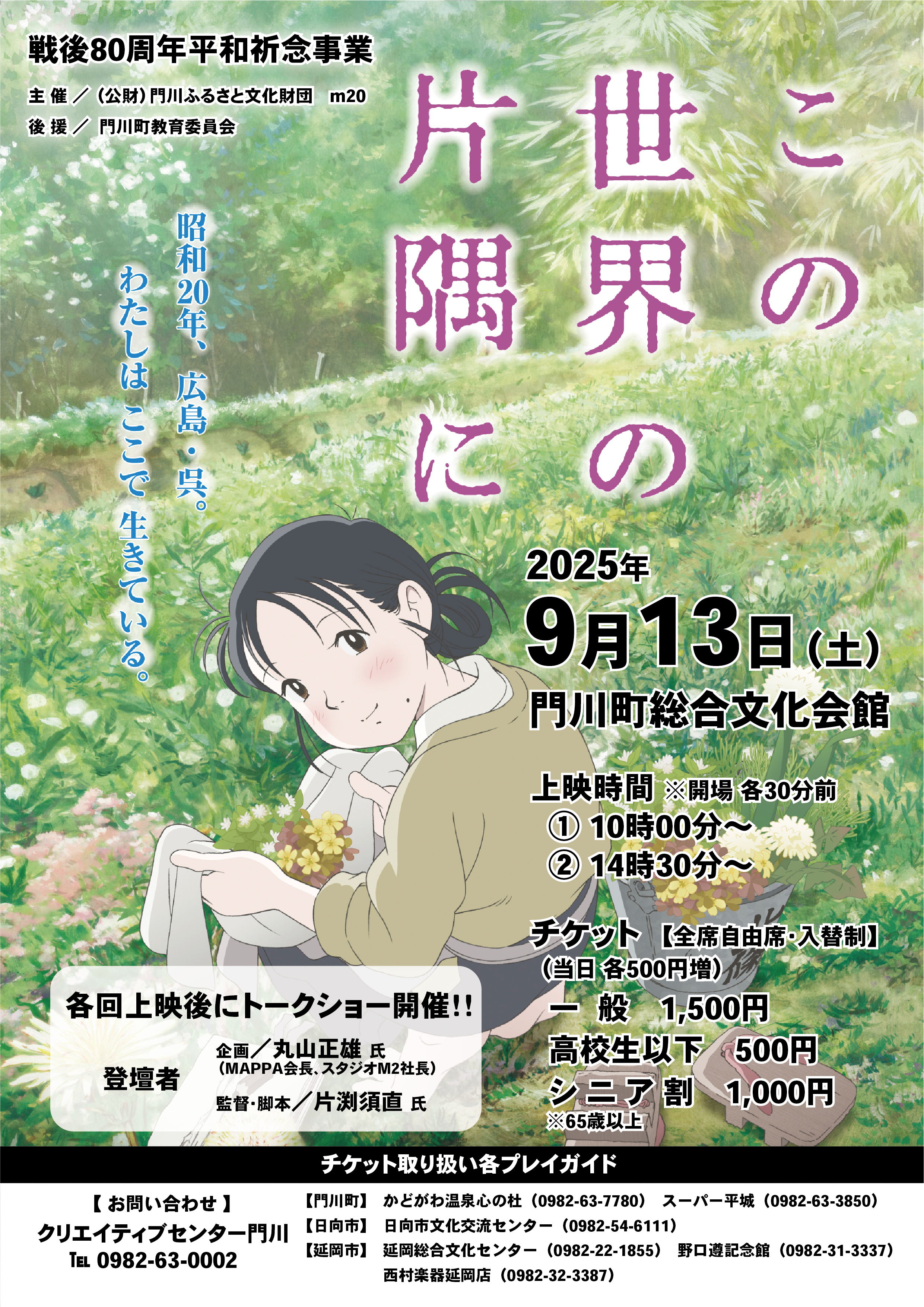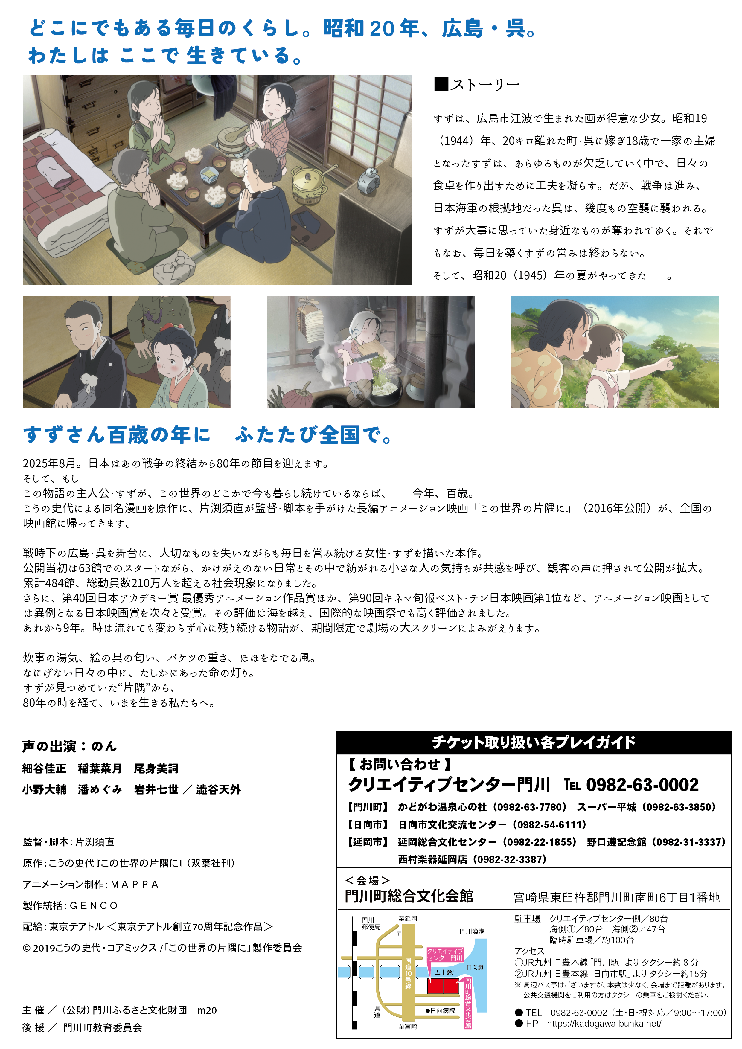 戦後80周年平和祈念事業 映画「この世界の片隅に」特別上映会チケット発売のご案内です。